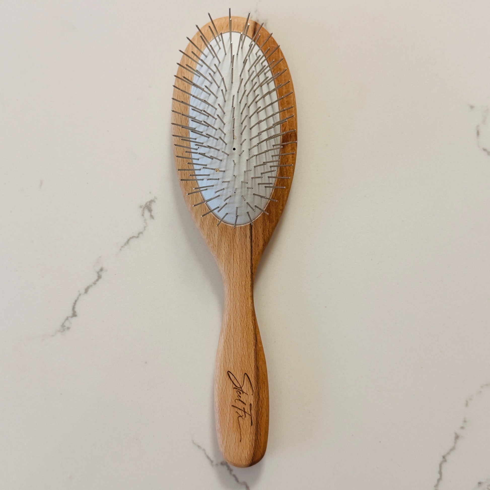 Medium Brush, beech wood oiled, oval large, steel pins 0.79 inches,
